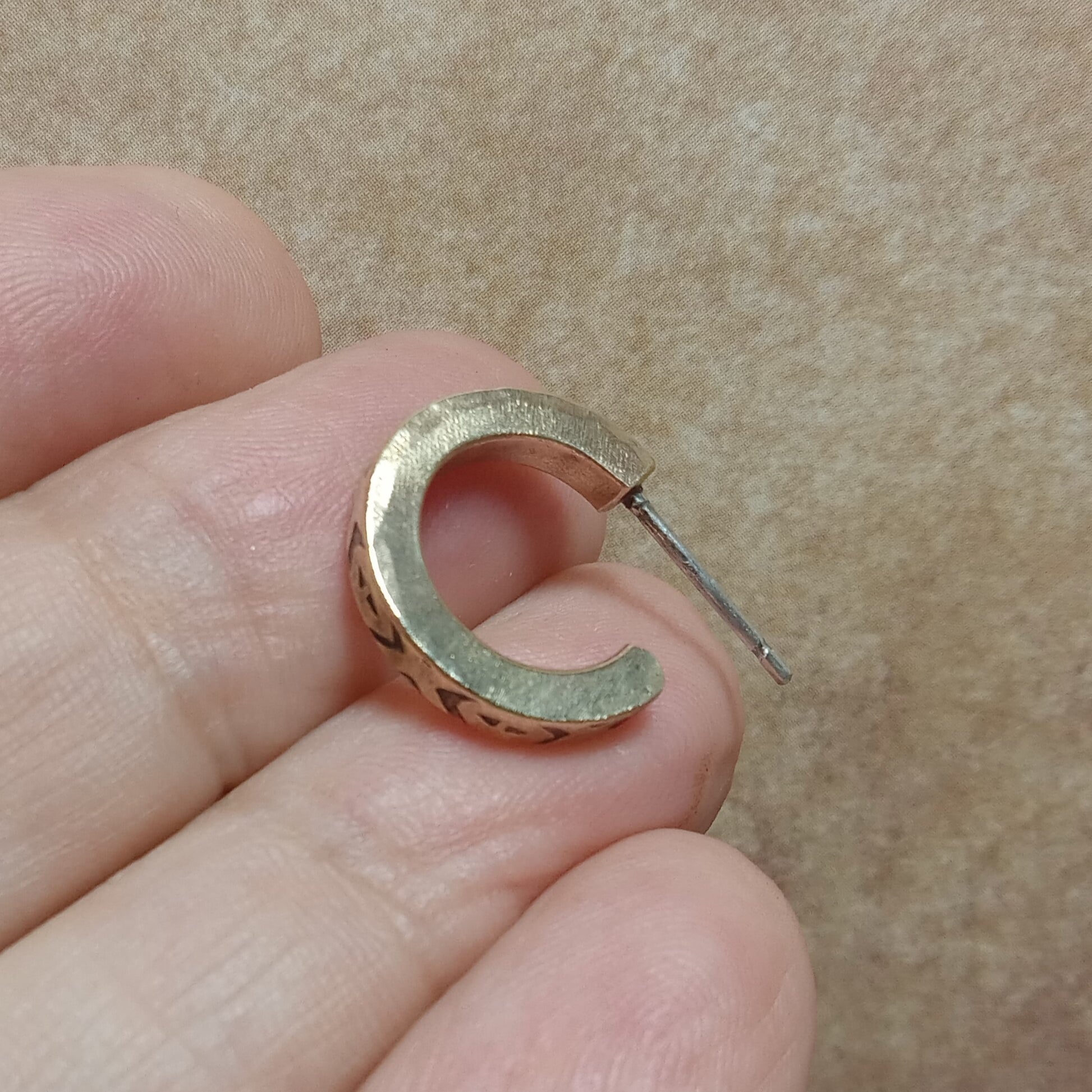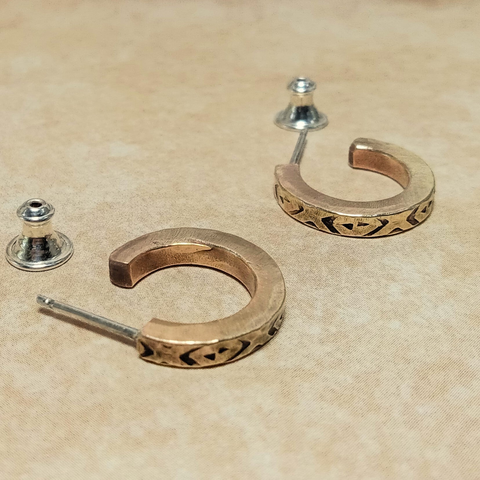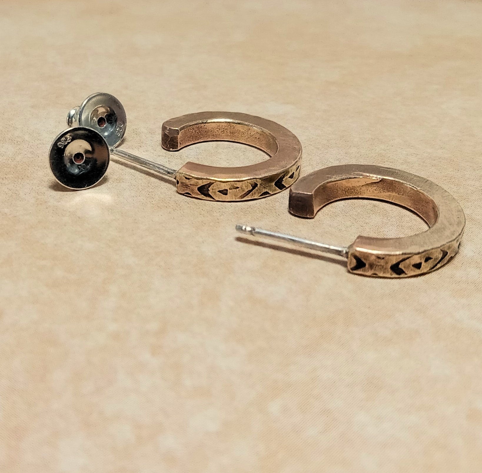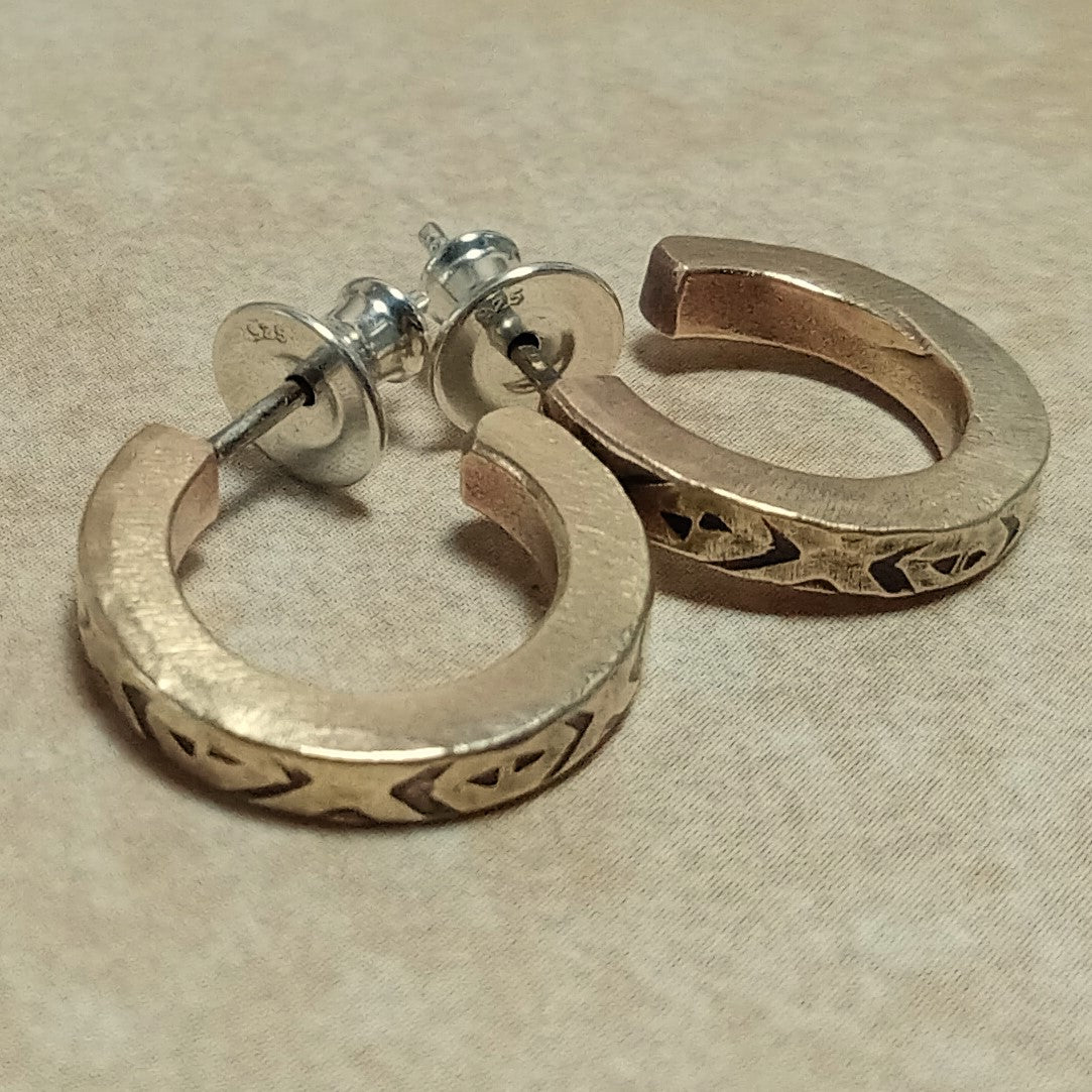 Unisex Bronze Hoop Earrings with Stamped Detail